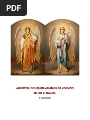În fiecare an pe data de 8 noiembrie sunt sărbătoriți sfinții arhangheli mihail și gavriil,... I n numele tatalui si al fiului si al sfantului duh, amin. Acatistul sfintilor arhangheli mihail si gavriil (o8, 21 noiembrie) rugaciunile incepatoare: S lava tie, dumnezeul nostru, slava tie! O, mare arhanghel mihail revarsă mir bun asupra robului lui dumnezeu (se rostește numele). Te scapă de rele şi îţi aduce bucurie, noroc şi sănătate! S lava tie, dumnezeul nostru, slava tie!