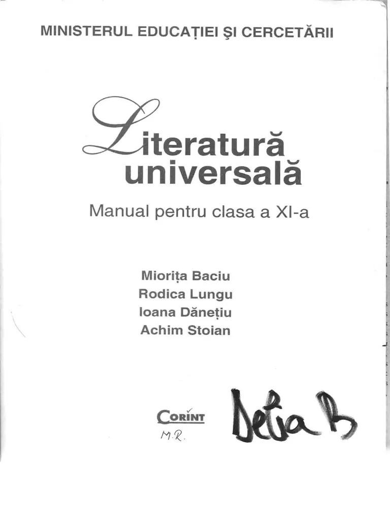 Manual De Literatura Universala Clasa A Xii-A Pdf. Nu există manuale pentru această opțiune! Centrul național de politici şi evaluare în educație. Matematica (a.2020, in limba romana) matematica (a.2020, in limba rusa) limba si literatura romana (a.2020) limba si literatura romana (a.2020, alolingvi) istoria romanilor si universala (a.2020, in limba romana) istoria romanilor si universala (a.2020, in limba rusa) educatia plastica (a.